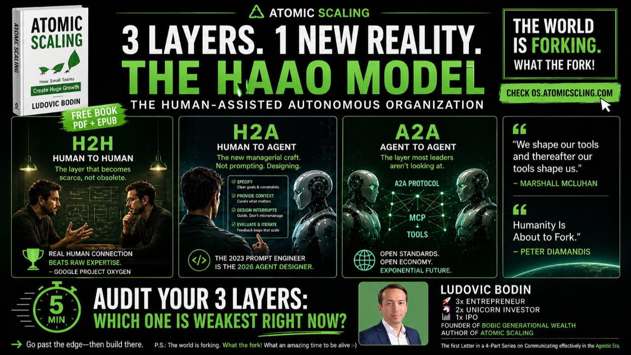 For most of corporate history, leadership rested on one conversation. That map is obsolete. By 2026, every serious operator runs three layers in parallel — and the Human-Assisted Autonomous Organization (HAAO) is the operating model that fuses them.